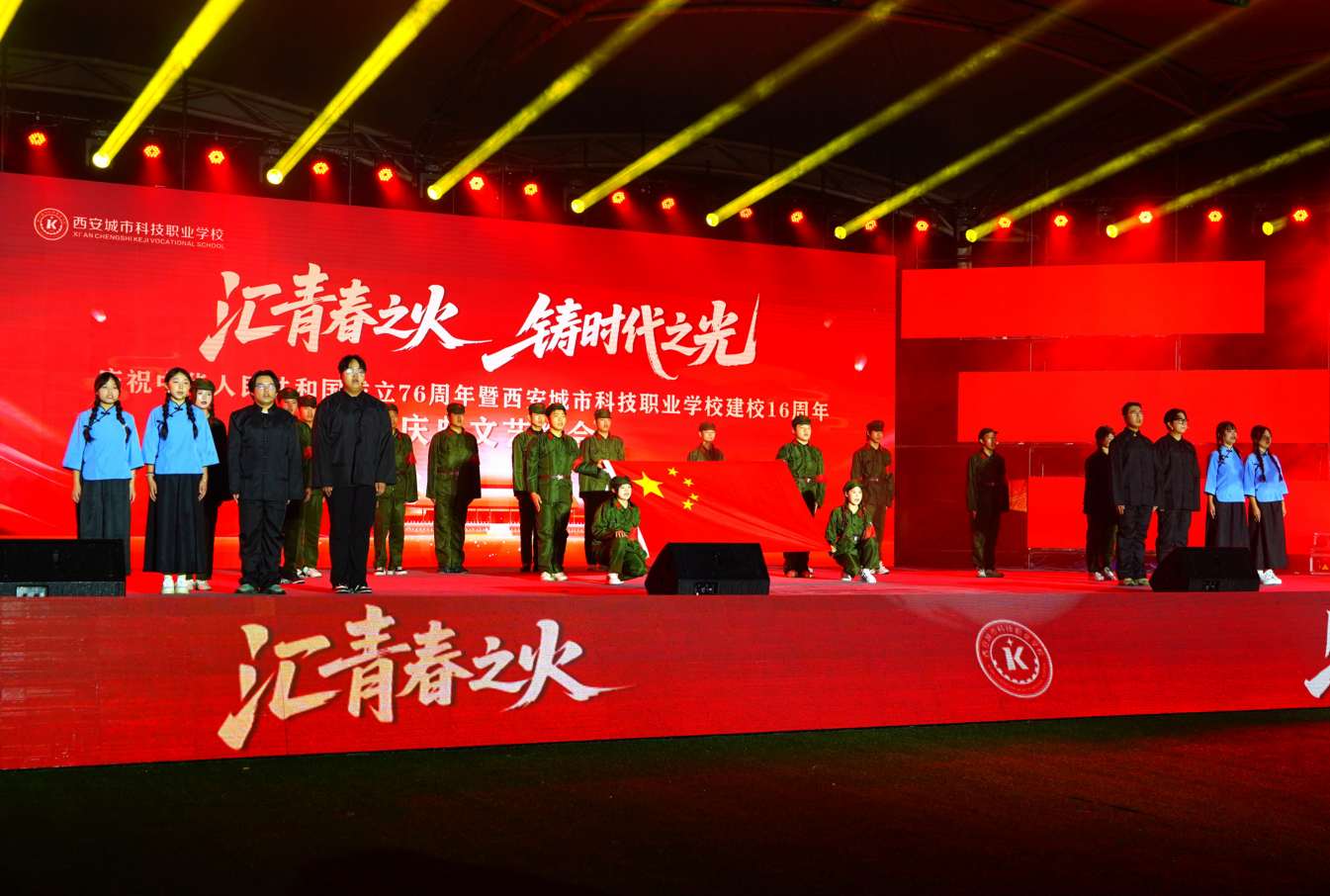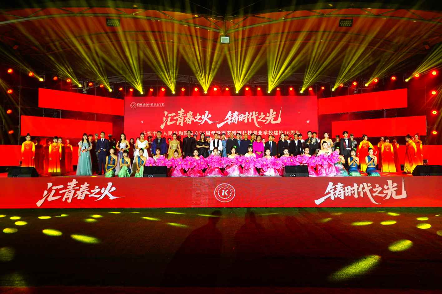 灯光亮起,音乐响起,9月27日的夜晚注定不凡!西安城市科技职业学校“汇青春之火·铸时代之光”庆祝建国76周年暨建校16周年文艺晚会双庆晚会圆满收官。