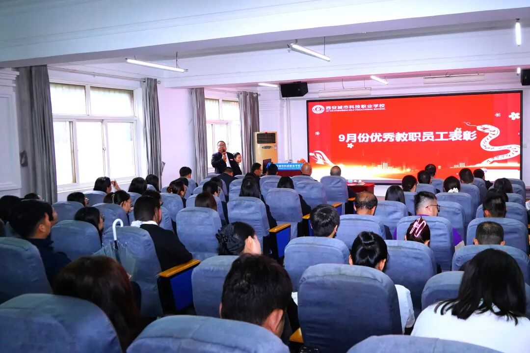 金秋九月,烟雨蒙蒙。9月28日下午,西安城市科技职业学校9月教职工大会在报告厅举行。会议回顾上月工作成果,表彰28名优秀教职工,全面部署10月重点工作。