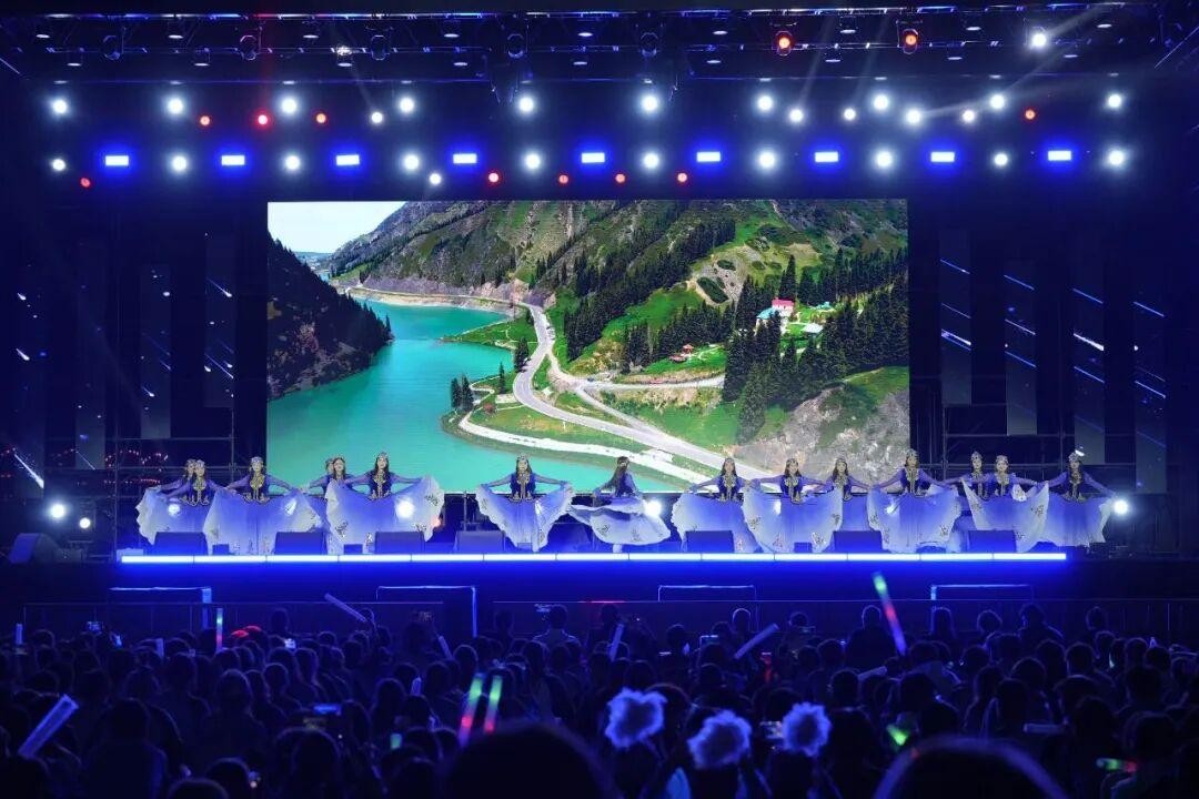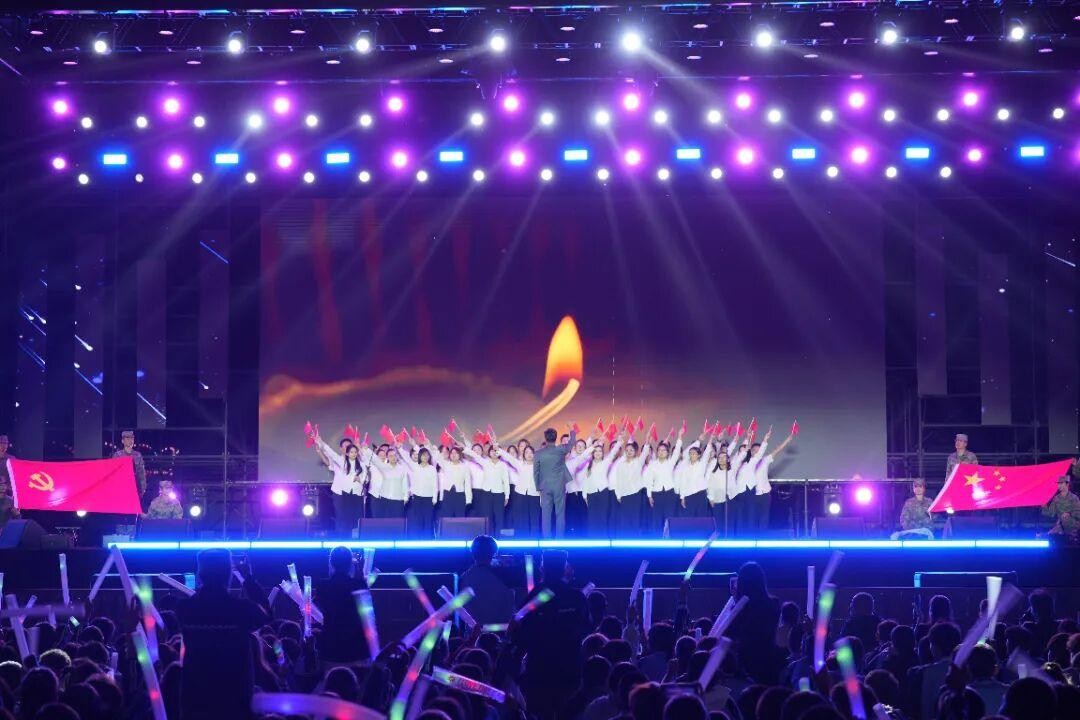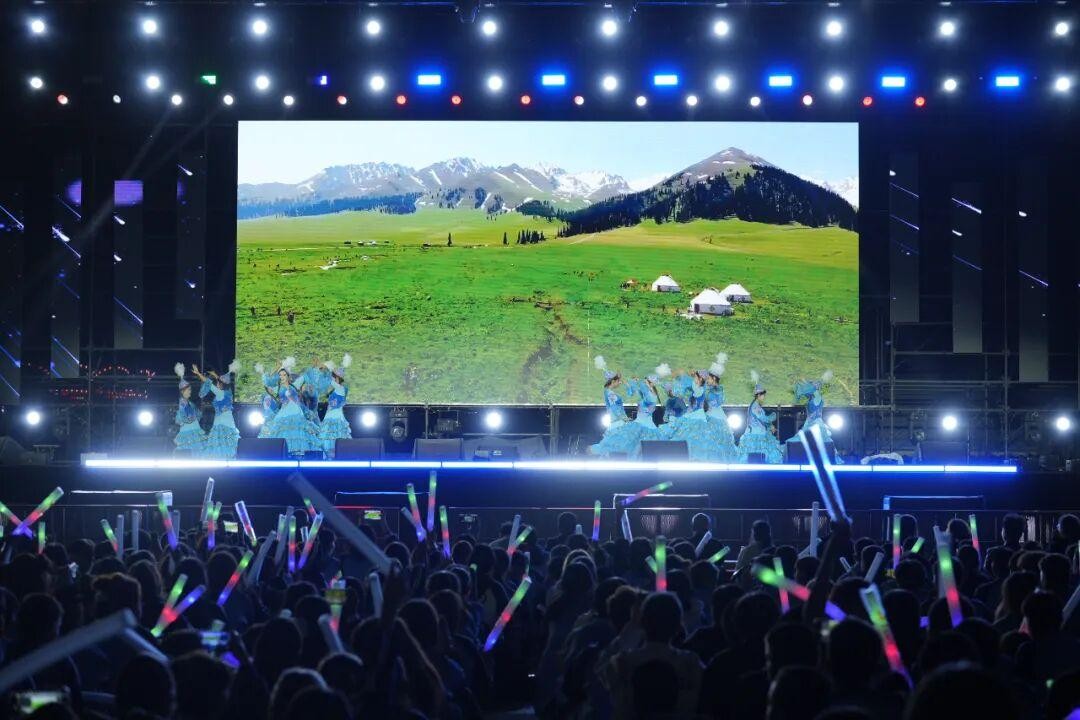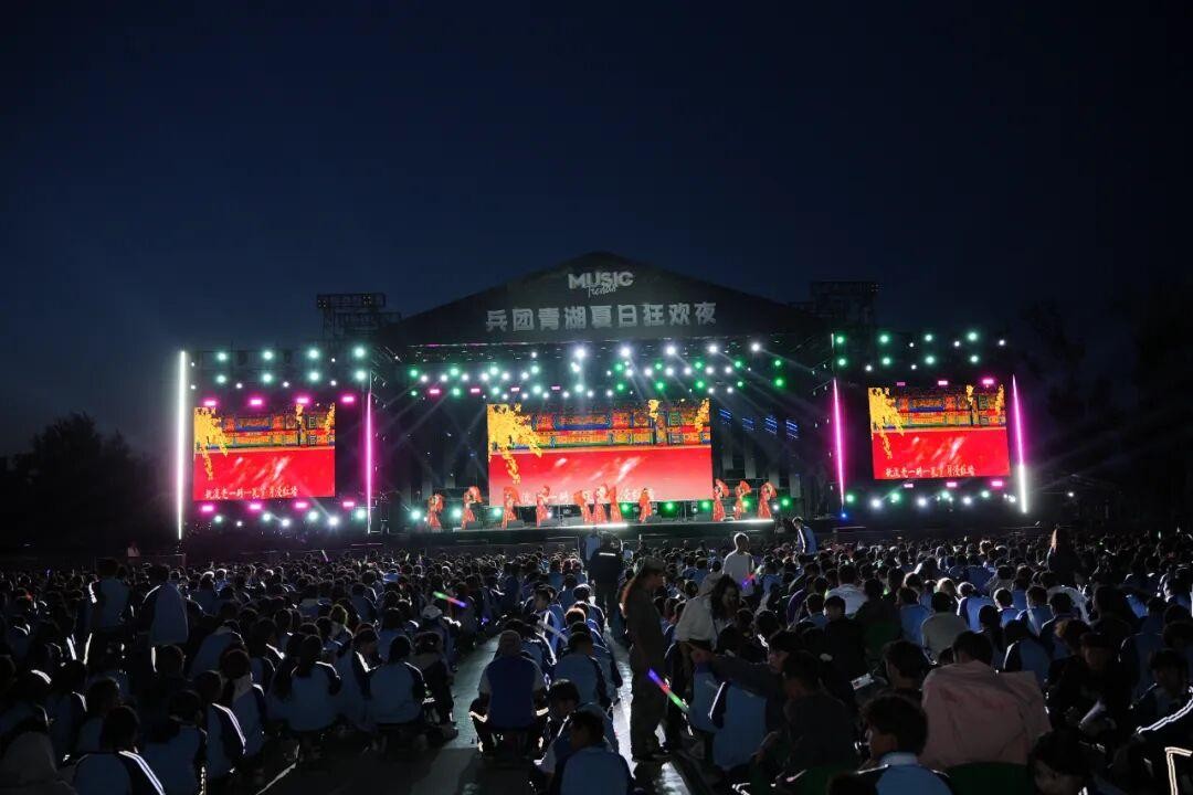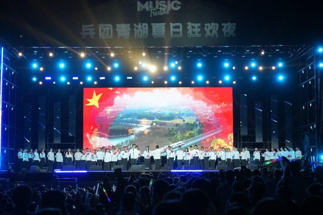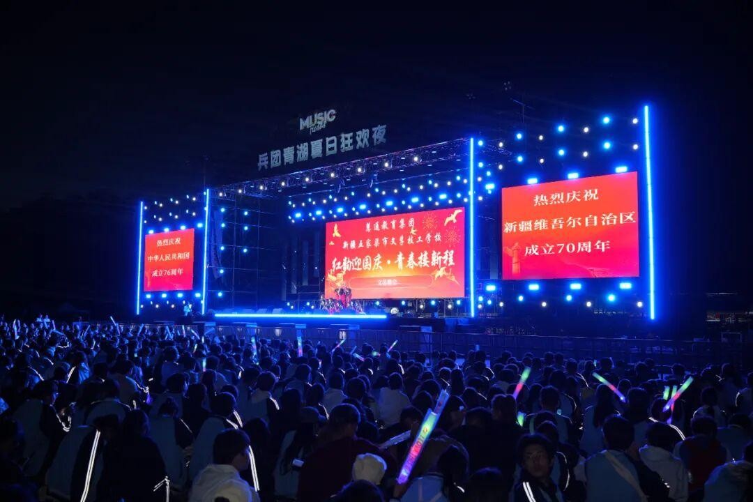 当七十载天山巨变遇上七十六载家国华章,本场以“红韵迎国庆·青春接新程”为主题的文艺晚会,在五家渠市青格达湖景区拉开帷幕,成为联结家国情怀与边疆记忆的艺术纽带。晚会以史诗般的红色脉络,融合新疆多元艺术特色与时代精神,通过“红韵戍疆、雅韵天山、同心守艺”层层递进,全场呈现祖国与新疆共生共荣的辉煌历程。
