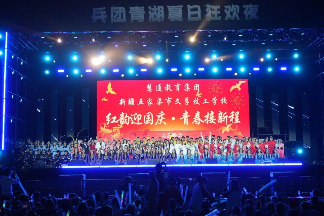 五家渠市文孚技工学校全体师生是舞台主角,他们以嘹亮歌声传递赤诚,用活力舞步诠释“接新程”的担当,让青春朝气与红韵情怀交融。 最后,晚会在掌声中圆满落幕,为双节献上真挚礼赞,也让全体师生奔赴新征程!